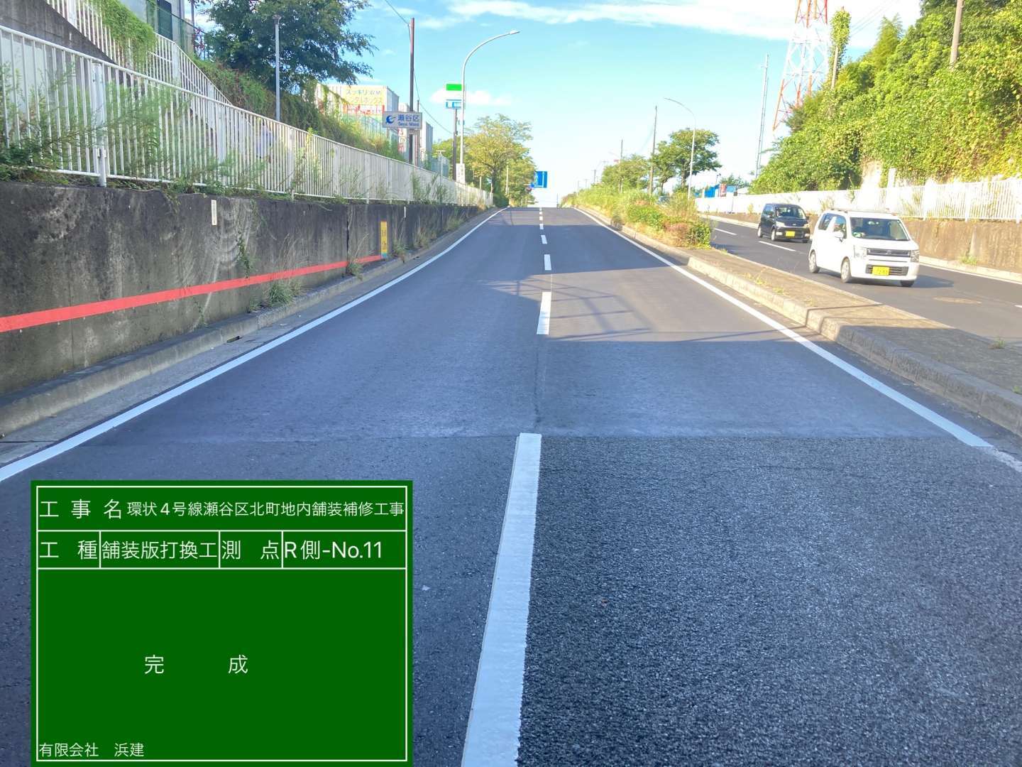 施工場所:横浜市泉区 金額(千円):31,453 施工期間:R4年3月~R4年7月 舗装打換え工-737.4m2 切削オーバーレイ工-2…